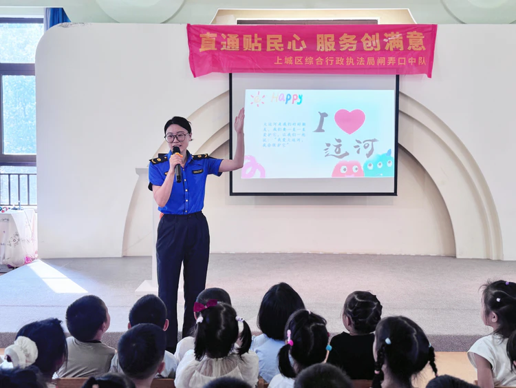 执法队员化身“城市环保姐姐”,以“我们的大运河”为主题,用充满童趣的语言和孩子们喜爱的故事形式,深入浅出地讲述了运河的诞生、申遗故事及其构成。巧妙地将环保知识融入孩子们熟悉的生活场景,引导他们思考河流生态保护的重要性,并发出倡议:希望每位小朋友都能成为守护运河的“小小治水卫士”。