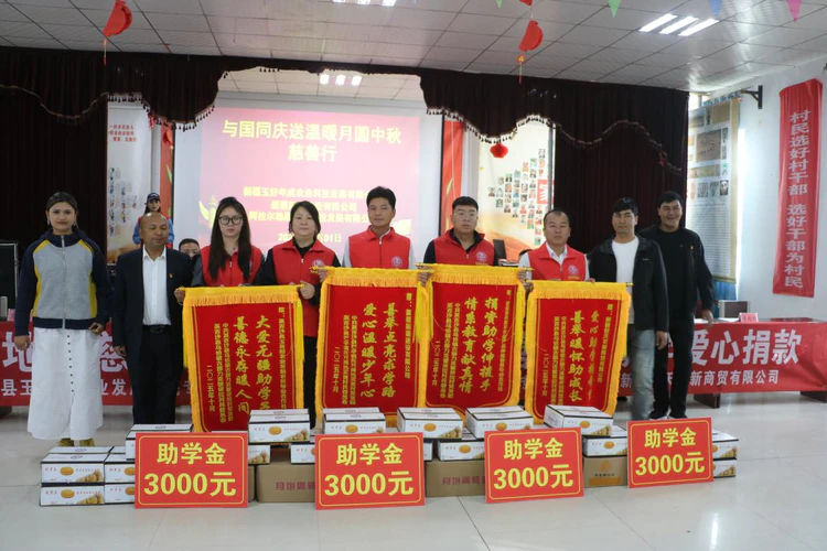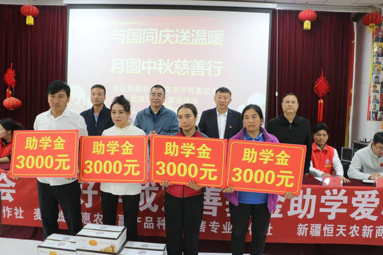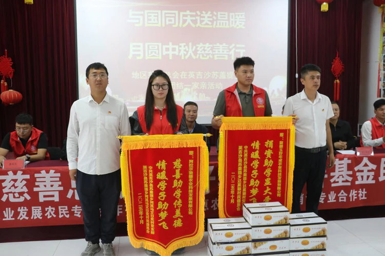 喀什地区慈善总会会长陈晓军、英吉沙县人大常委会主要负责同志,以及新疆玉好年成农业科技发展有限公司总经理、玉好年成慈善基金创始人王鹏等爱心企业代表共同出席了捐赠仪式。并向9名新考入大学的学生家庭发放2.7万元助学金,以爱心善举庆祝共和国华诞,为低收入家庭学子的求学之路送去温暖。