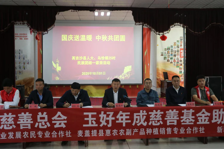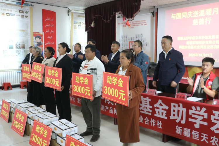 陈晓军会长在讲话中动情地说:"国庆佳节,我们庆祝国家的繁荣,更要关注构成国家基石的每一个家庭。新疆玉好年成农业科技发展有限公司积极发起慈善基金,用企业的担当为基层群众办实事、解难题,这份责任与情怀,是献给祖国生日最好的礼物。"