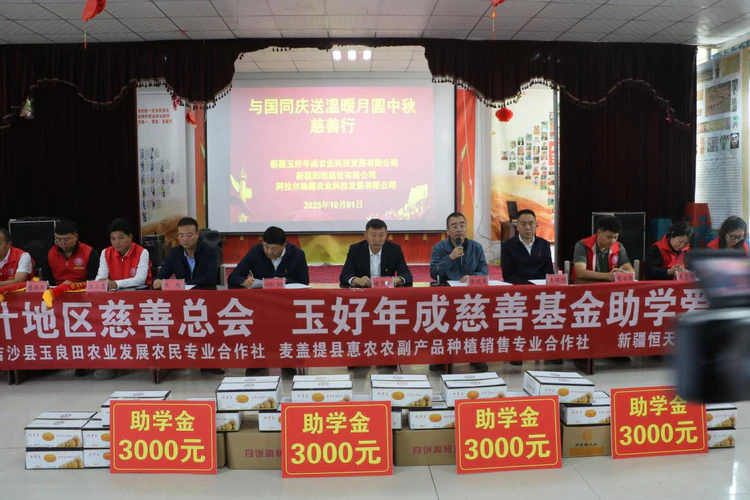 新疆讯 (陈会林报道) 金秋时节,硕果飘香。在中华人民共和国成立76周年华诞与中秋佳节“双节”同庆的美好时刻,喀什地区慈善总会联合多家爱心企业,于10月1日上午在英吉沙县乌恰镇古丽力克霍依拉(28)村和苏盖提乡达莫顺(3)村开展“庆国庆 献爱心 送温暖”今秋助学活动。